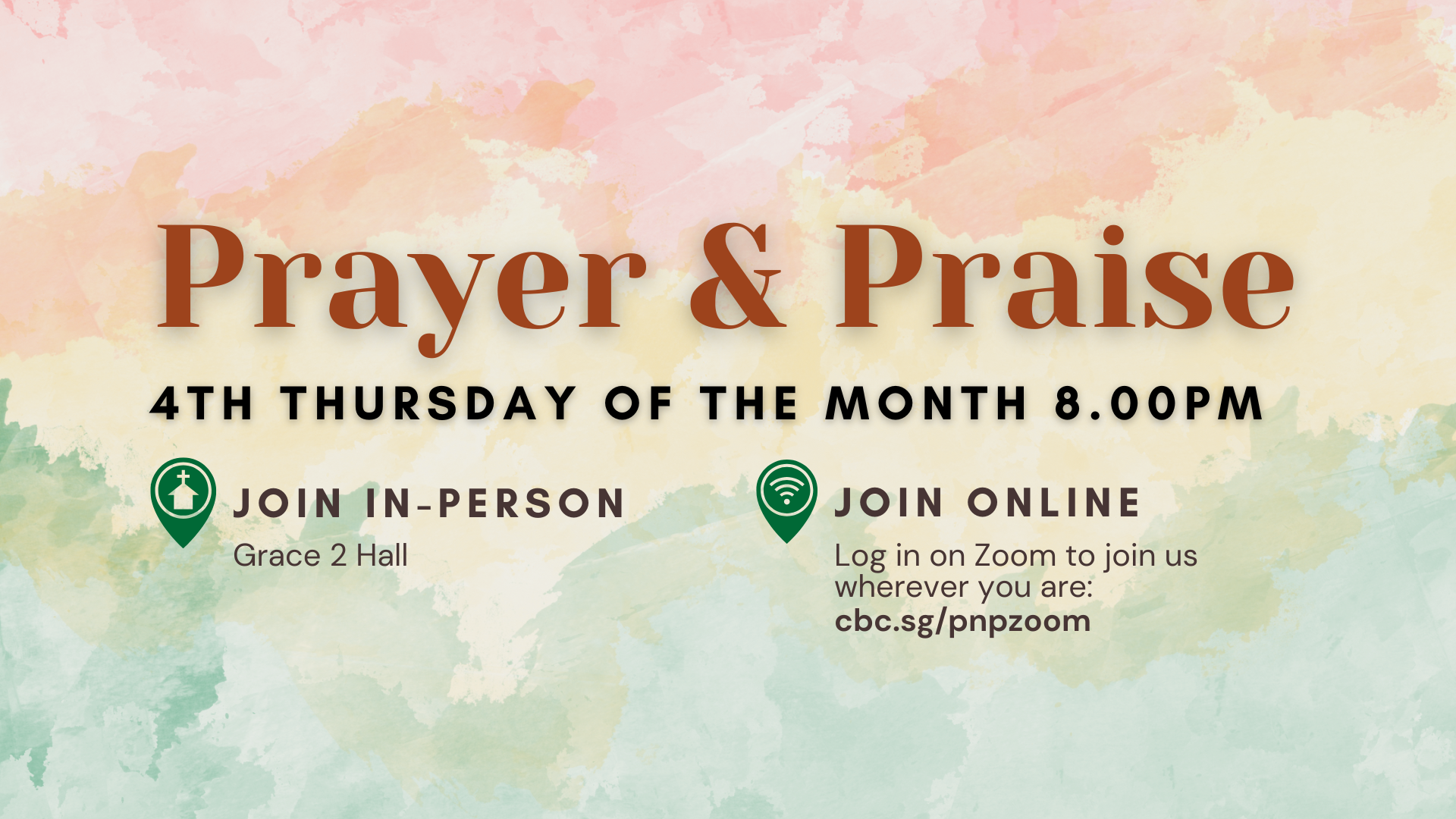 Online: Log in on Zoom to join us to pray wherever you are at cbc.sg/pnpzoom (Zoom meeting will be open from 7.50pm)