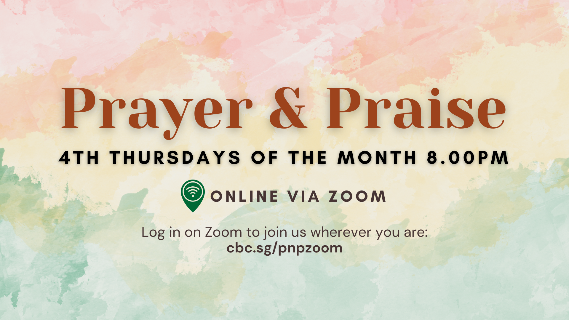 Online: Log in on Zoom to join us to pray wherever you are at cbc.sg/pnpzoom (Zoom meeting will be open from 7.50pm)